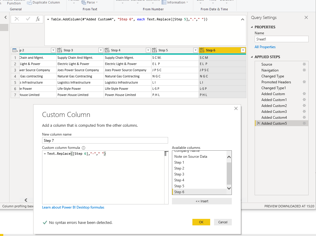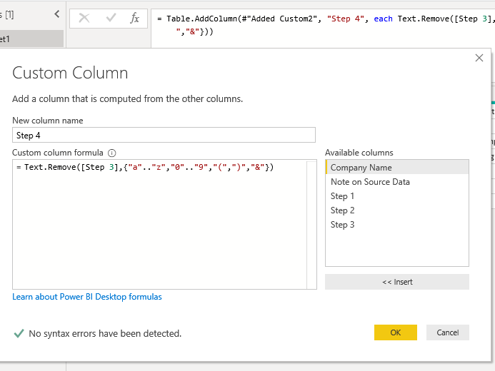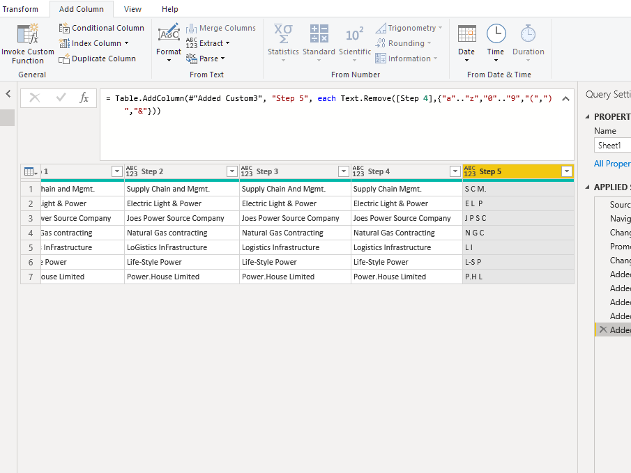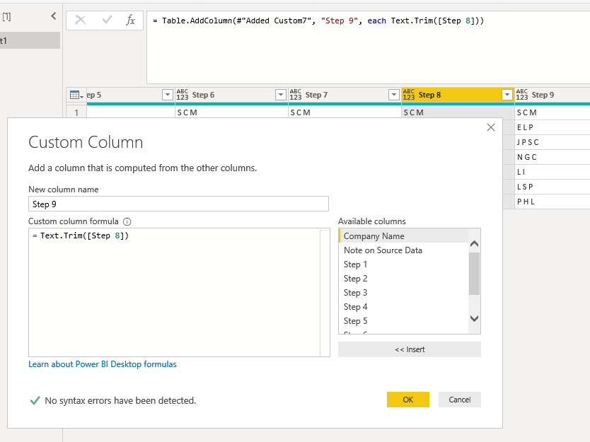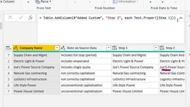 Finally, your source data will drive the functions you use and the order in which you use them. Some of the steps in this example can be reordered or repeated to suit your data source — for example Text.Trim() in the picture gallery above is Step 9 rather than Step 1a as described above.